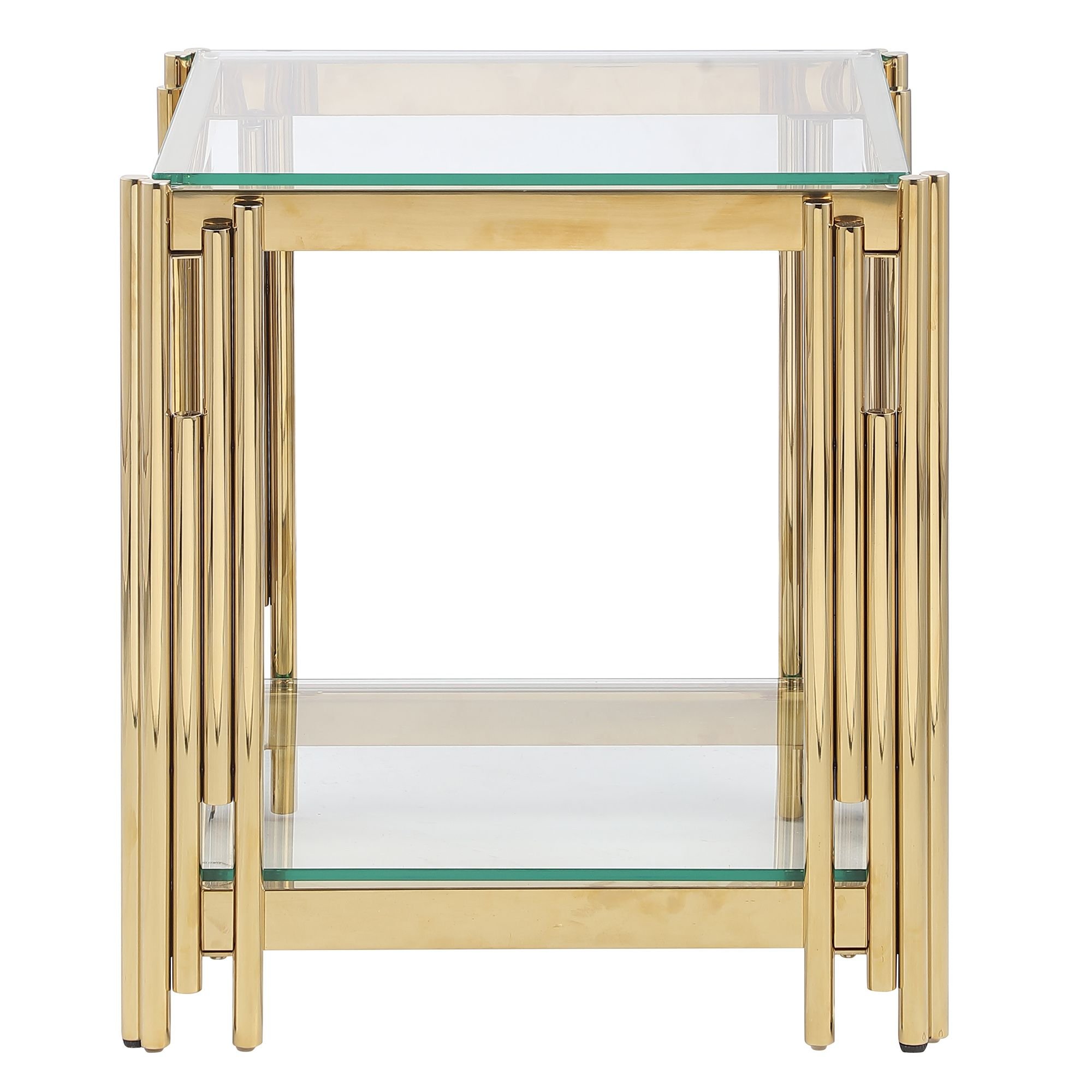 Bring a beautiful touch of modern to your home with the Ellen Coffee Table.With two shiny tempered glass shelves and Irregular cylindrical stainless steel pipe welding, this coffee table is designed to stand out in your home. Add a pop of industrial chic to your home with this striking console table. Stainless steel and glass are easy to clean and durable for beauty that will last. The coffee table in the Ellen collection measures 20"L x 20"W x 22"H and Weighs 39 lbs. to perfectly fit your home.