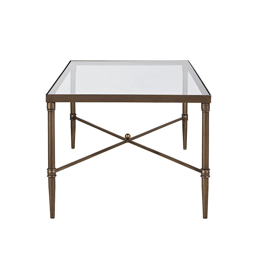 The sturdy bronze metal finished frame and tempered glass top makes this table the center off attention. Assembly required.