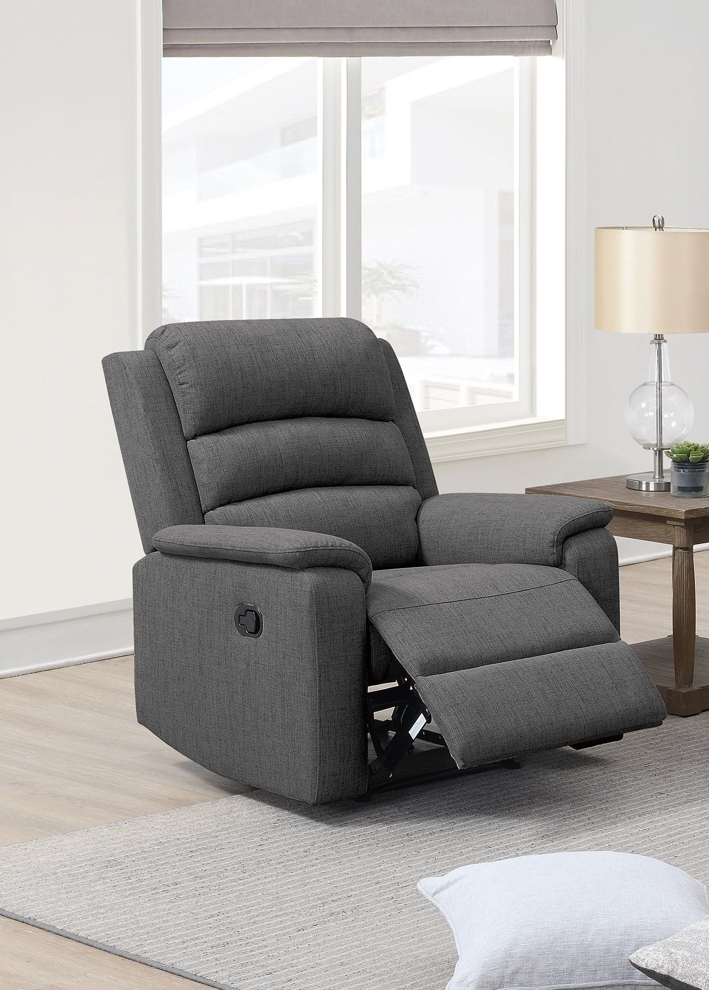 Modern StyleDark Gray ColorBurlap FabricPadded ArmrestCushion Couch ReclinersMotion Recliner Chair Only.Simple Assembly requires.