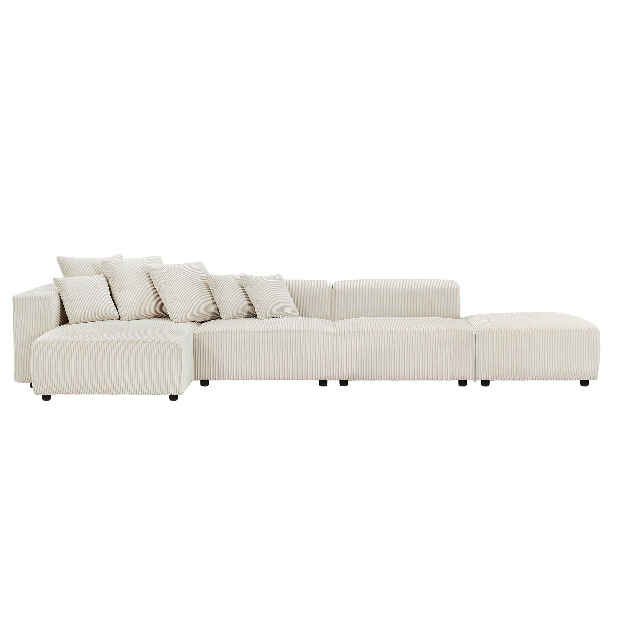 Soft Corduroy Sectional Modular Sofa SetModern modular Sofa - Premium corduroy upholstery and solid larch wood frame of this L-shape sectional sofa set provide a stylish, sturdy base for cozy seating. A touch of tranquility to come home to each day.Corduroy upholstery - This living room chaise sofa set features indulgent corduroy fabric, which cradles you in softness with its plush, velvety texture. Durable and cosy, the strip woven fabric smoothly conforms to your shape for unparalleled comfort.