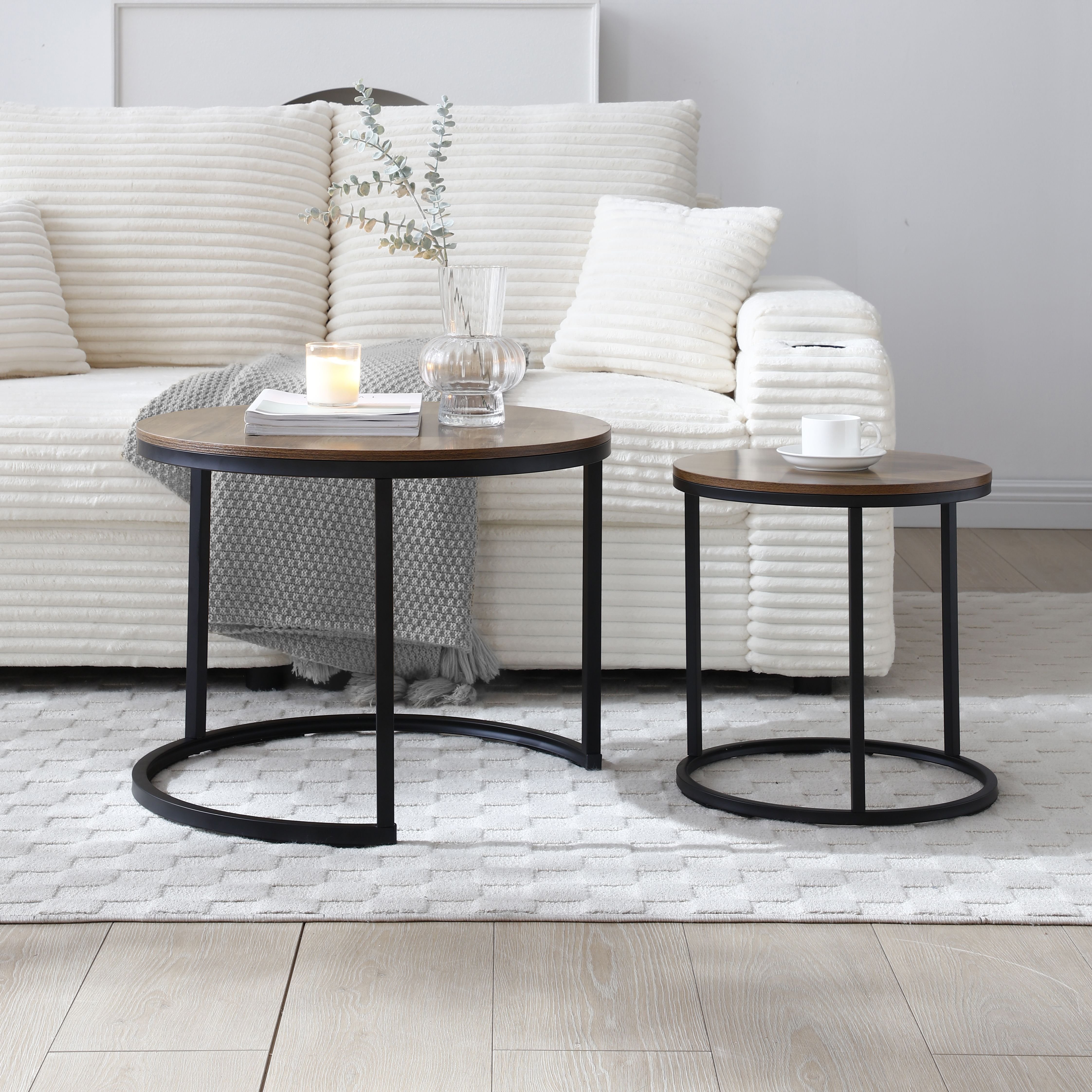 Home > Set of 2 Coffee Table Nesting Side Round End Table Top Sturdy Metal Frame Desk Centerpiece Living Room Bedroom Apartment Modern Industrial Simple Nigh