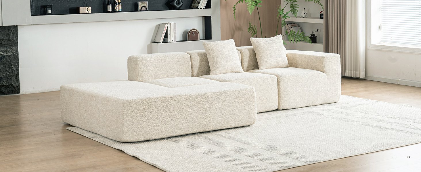 Unmatched Comfort - This sectional sofa offers plush comfort and spacious seating. Upholstered in ultra-soft boucle fabric, the sofa comes with a pocket springs with high-density foam structure, ensuring long-lasting durability and consistently comfortable seating experience.