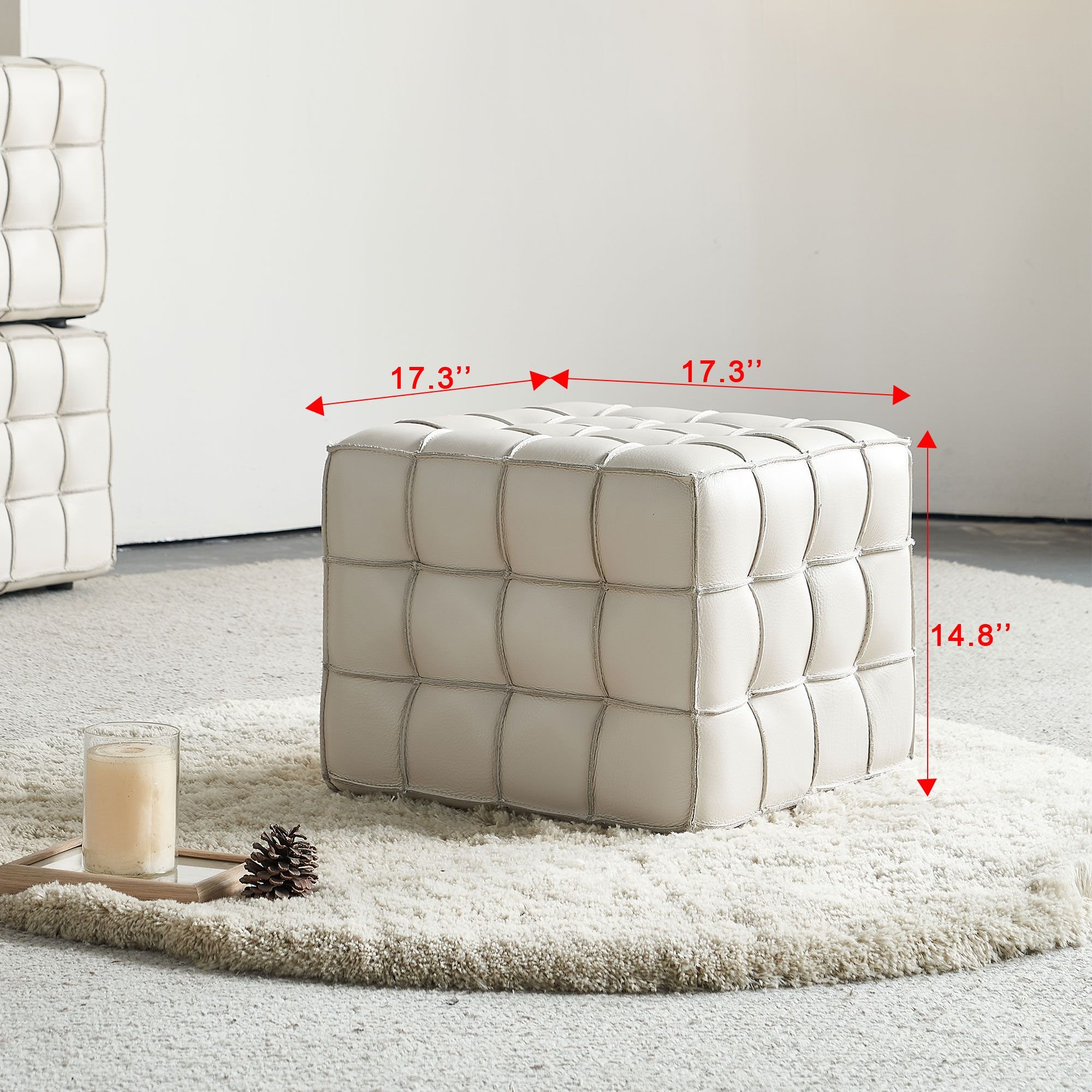 17.32''W Genuine Leather Tufted Ottoman,Footstool for Living Room & Bedroom,Beige Color 17.32''W Genuine Leather Tufted Ottoman,Footstool for Living Room & Bedroom,Beige Color 17.32''W Genuine Leather Tufted Ottoman,Footstool for Living Room & Bedroom,Beige Color