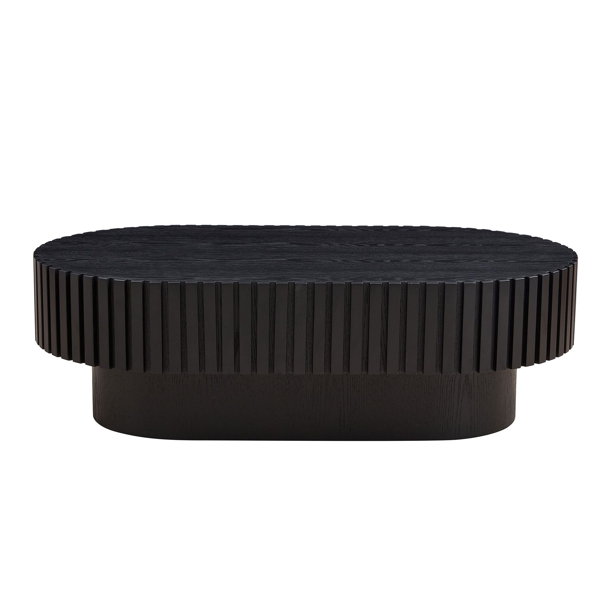 43.70 Inch Modern Handcraft Drum Coffee Table Oval Coffee Table for Living Room,Small Wooden Coffee Table with Sturdy Pedestal for Office,Black