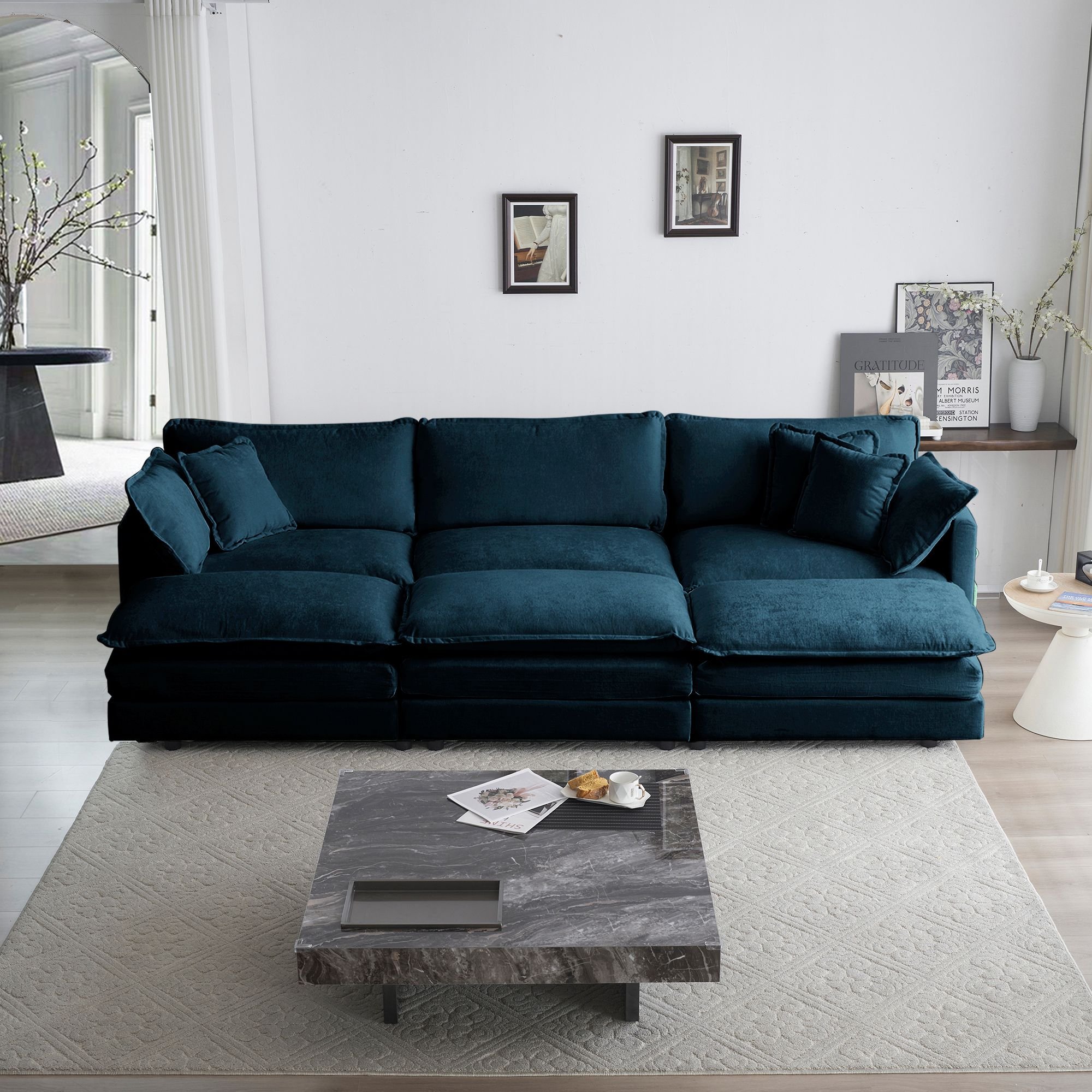 Superior comfort - Upholstered in high-end breathable Chenille fabric and high-quality sponge, with cushioned thick foam at backrest and seat for prime relaxation. Lean back and stretch out your legs out long on the ottomans when you or guests need more space. Customize the placement of the five pillows anywhere you would like to add extra support when sitting after a long day or watching a movie.